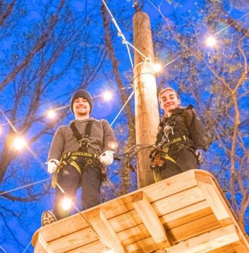 TreeRush closes at 10pm during the summer and “Night Climb” tickets will replace our “Last Call” tickets. The length of your climbing adventure will depend upon your reservation start time. Our most difficult trails begin to close at about 9:15pm.